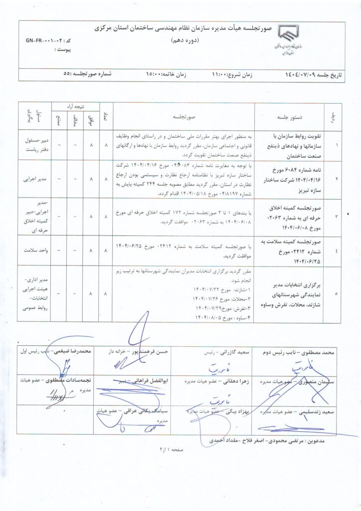 مصوبات و اعضای هیأت مدیره