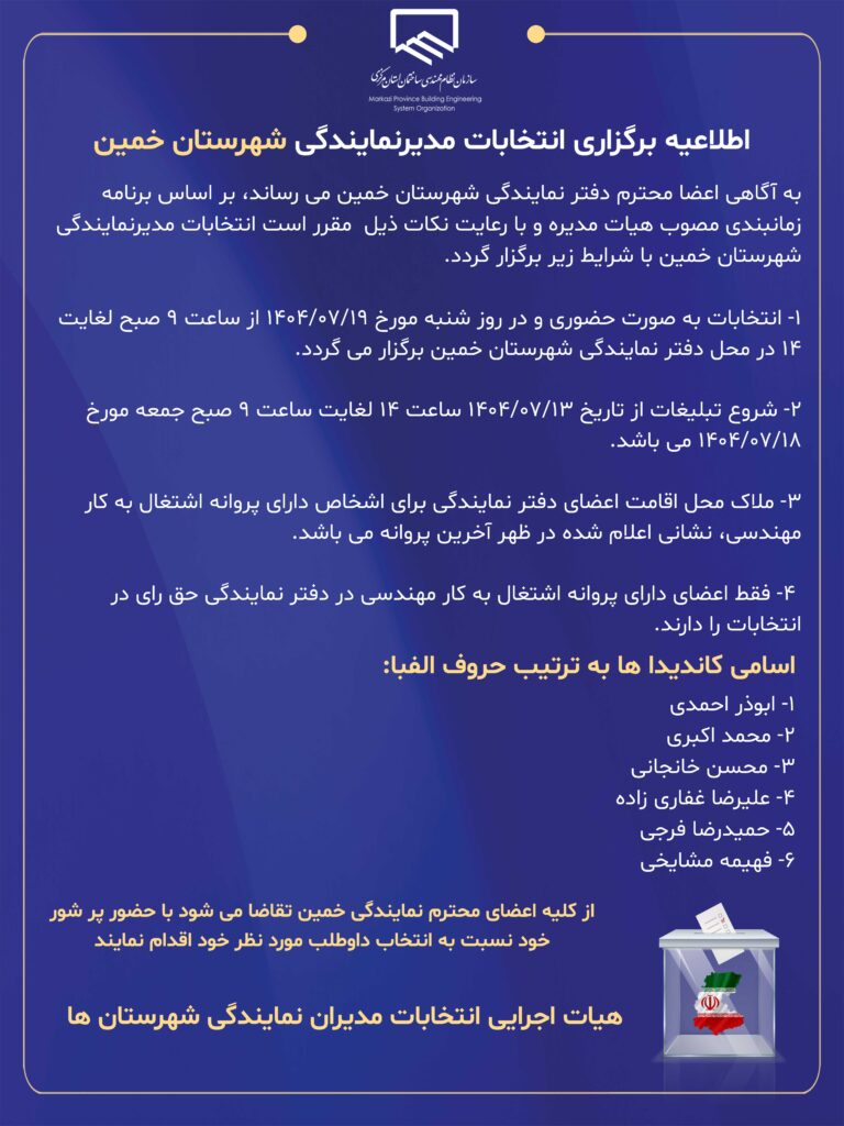 - اطلاعیه برگزاری انتخابات مدیرنمایندگی شهرستان خمین