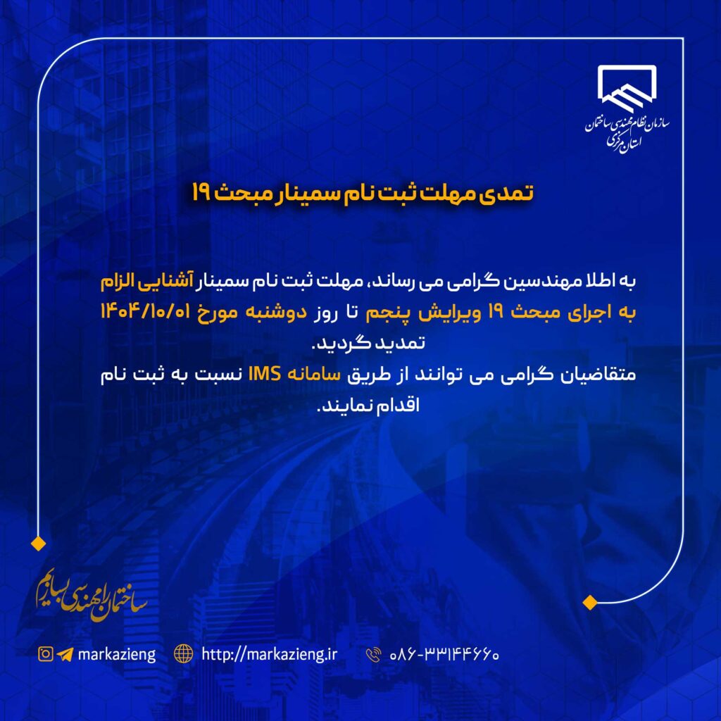 5. تمدی مهلت ثبت نام سمینار مبحث ۱۹ویرایش پنجم