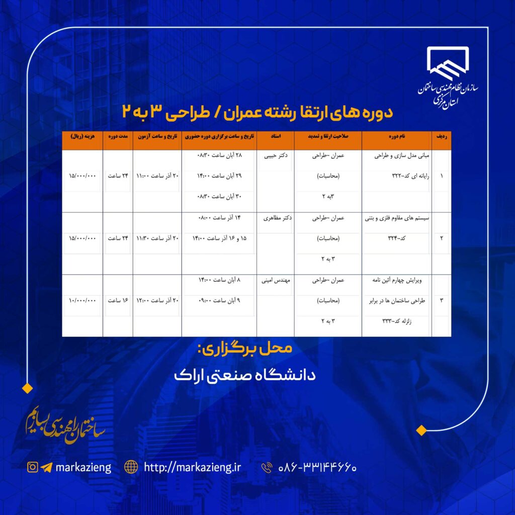 - دوره های ارتقا رشته عمران / طراحی ۳ به ۲