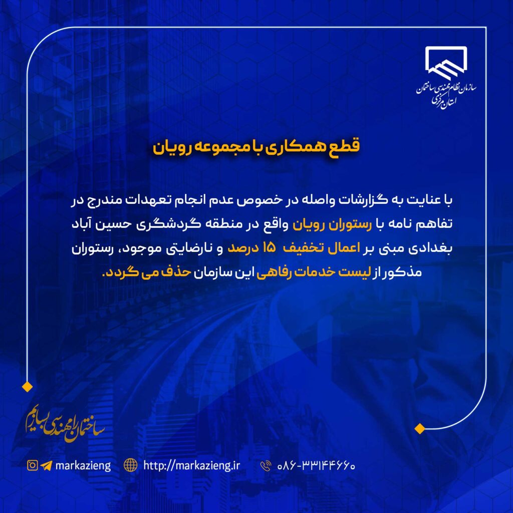 5. قطع همکاری با مجموعه رویان