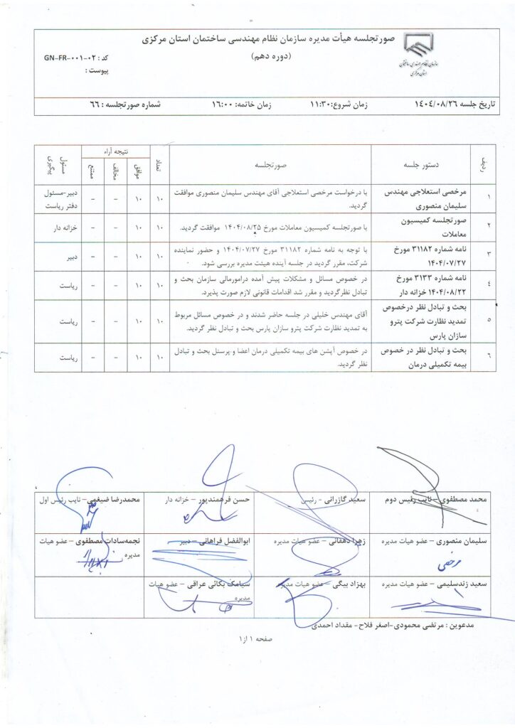 مصوبات و اعضای هیأت مدیره