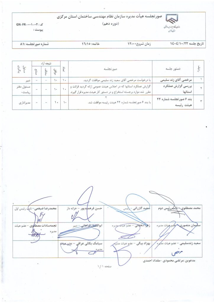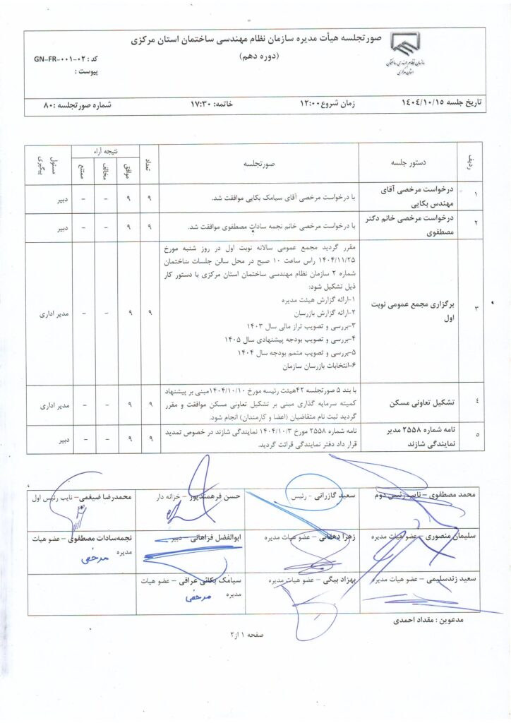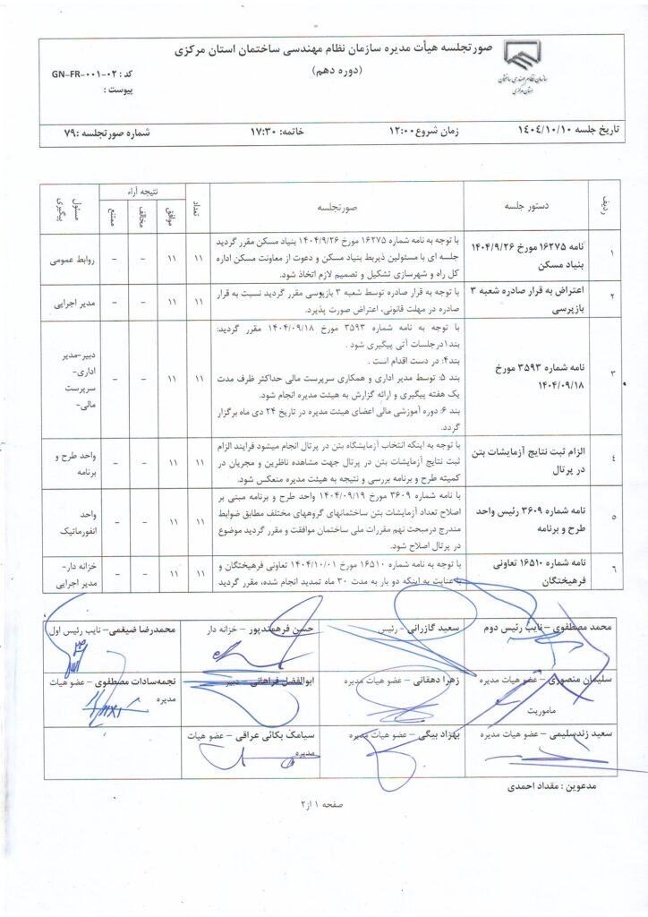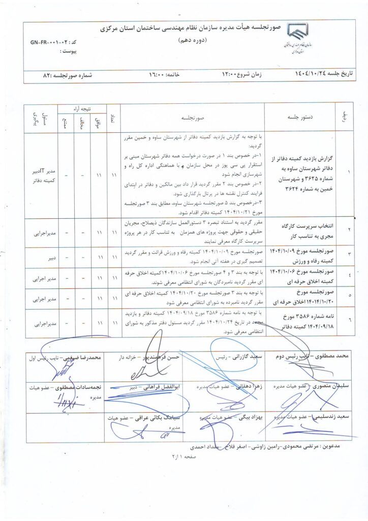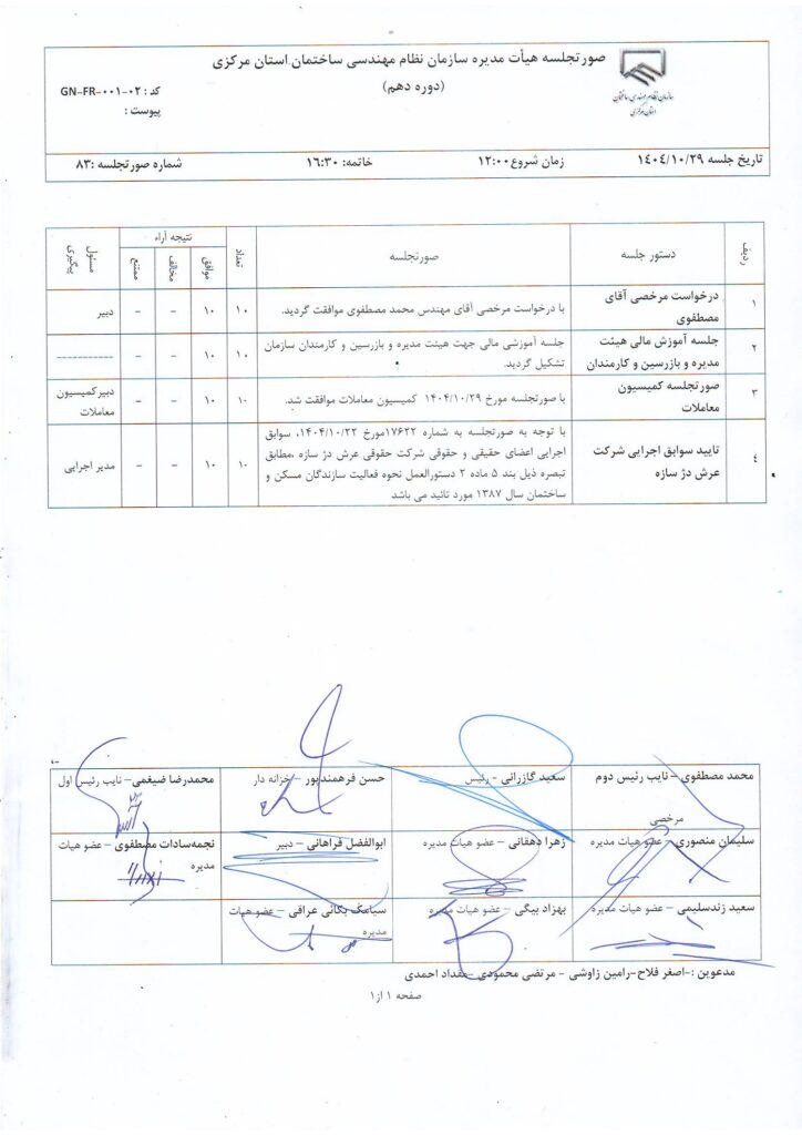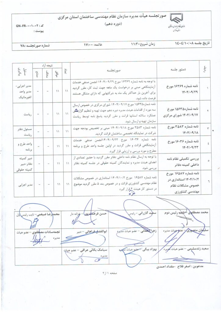 مصوبات و اعضای هیأت مدیره
