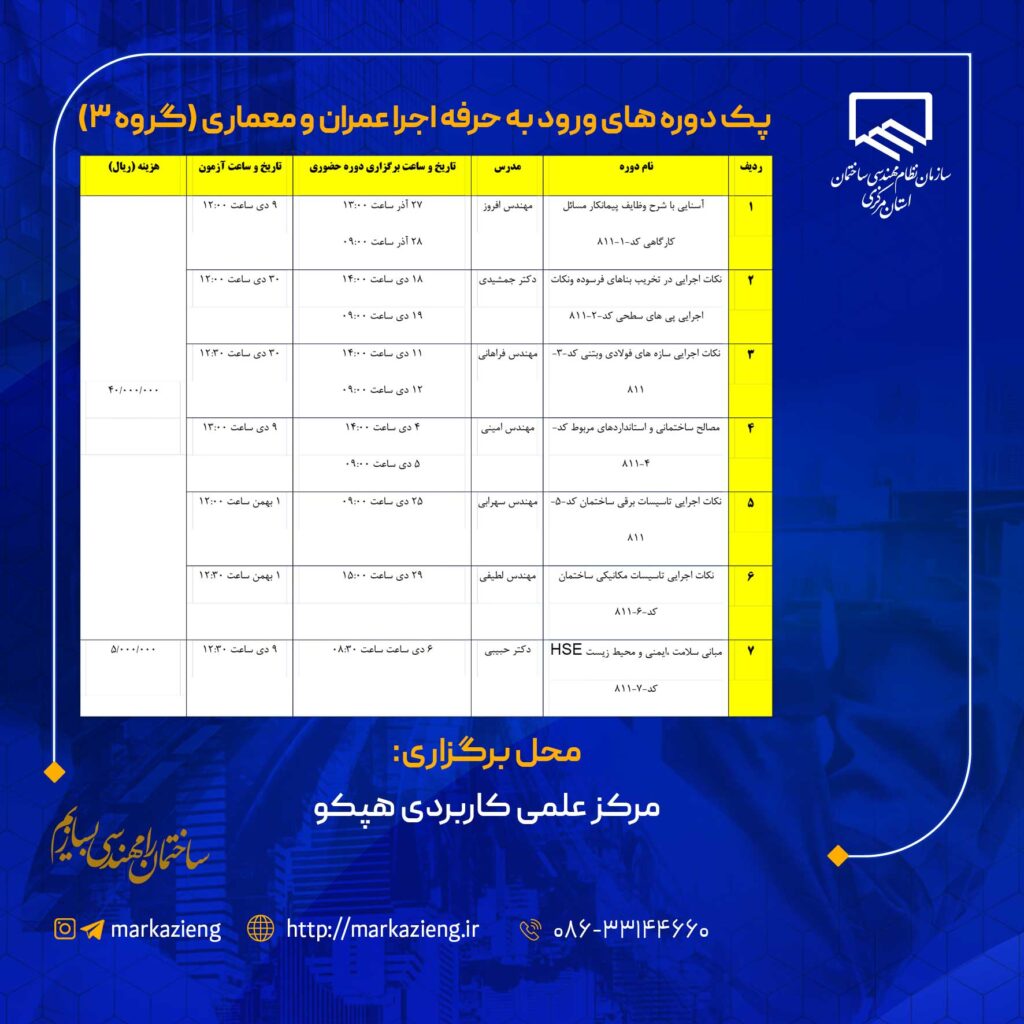 - پک دوره های ورود به حرفه اجرا عمران و معماری (گروه ۳)