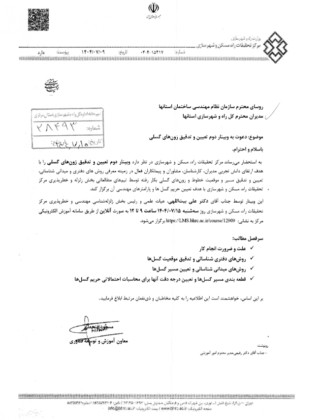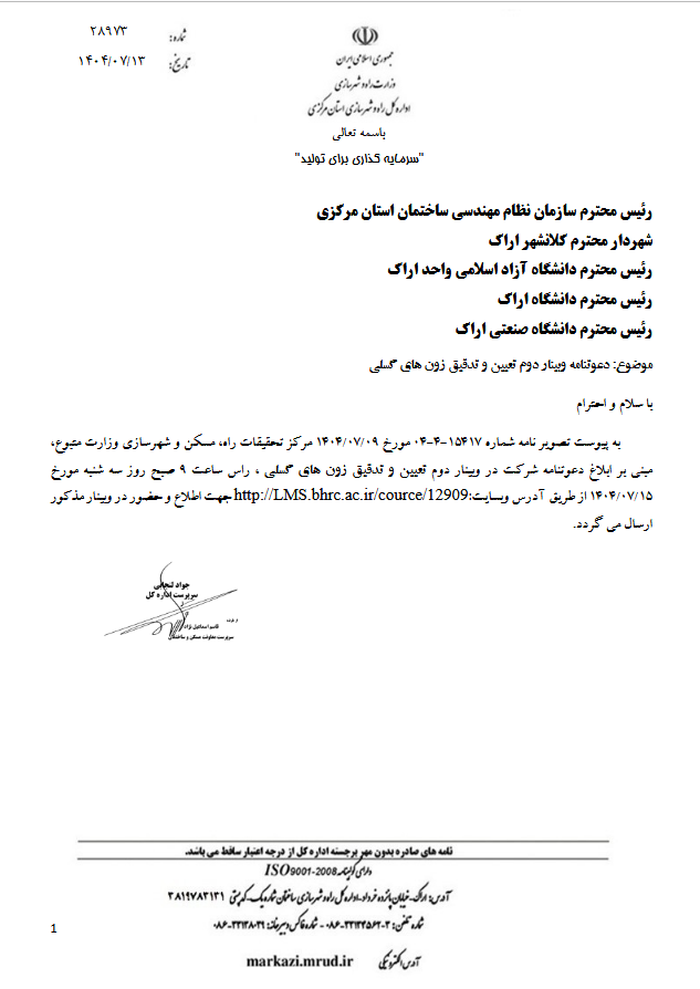 لینک و دعوتنامه وبینار دوم تعیین و تدقیق زون های گسلی