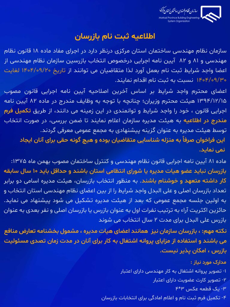 ساختمان شماره 1: خیابان شهید شیرودی، نبش کوچه مریم میرزاخانی، سازمان نظام مهندسی ساختمان استان مرکزی.