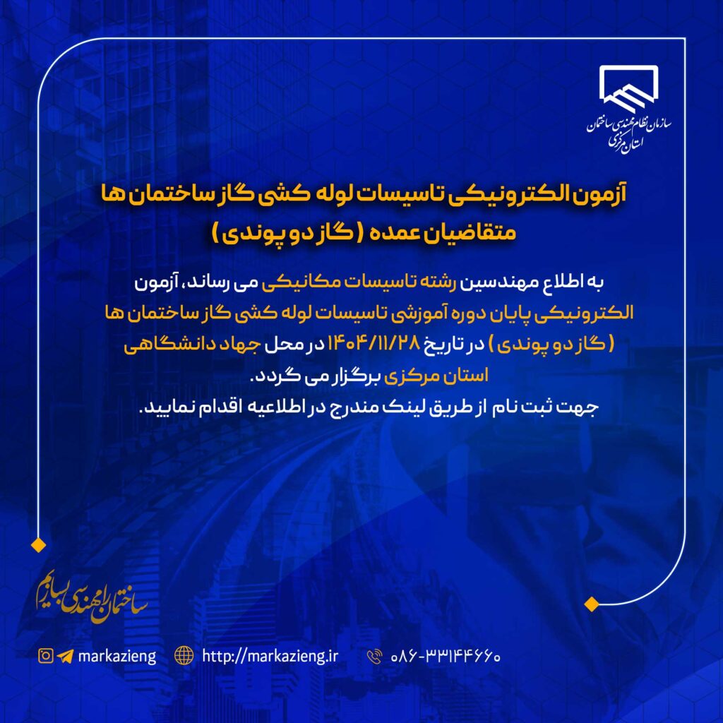 آزمون الکترونیکی تاسیسات لوله کشی گاز ساختمان ها متقاضیان عمده ( گاز دو پوندی )