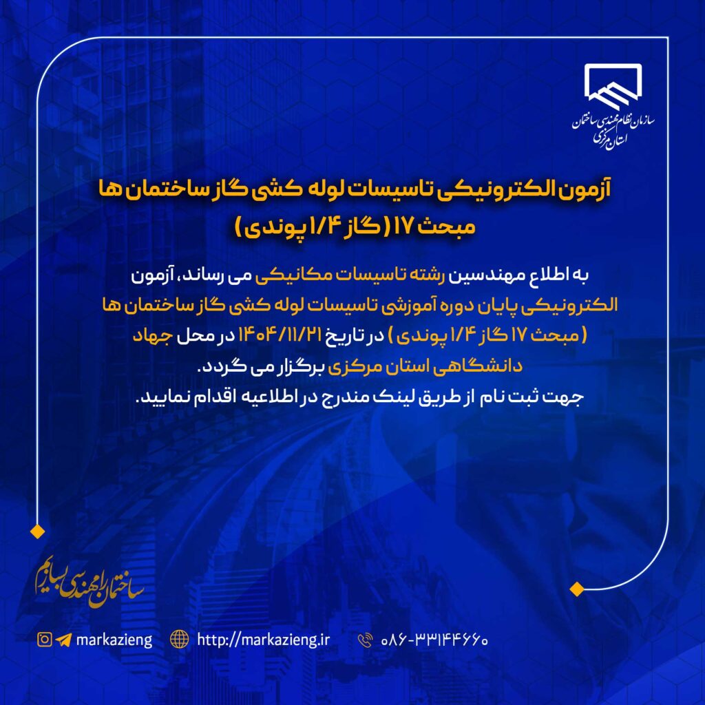 آزمون الکترونیکی تاسیسات لوله کشی گاز ساختمان هامبحث ۱۷ ( گاز ۱/۴ پوندی )