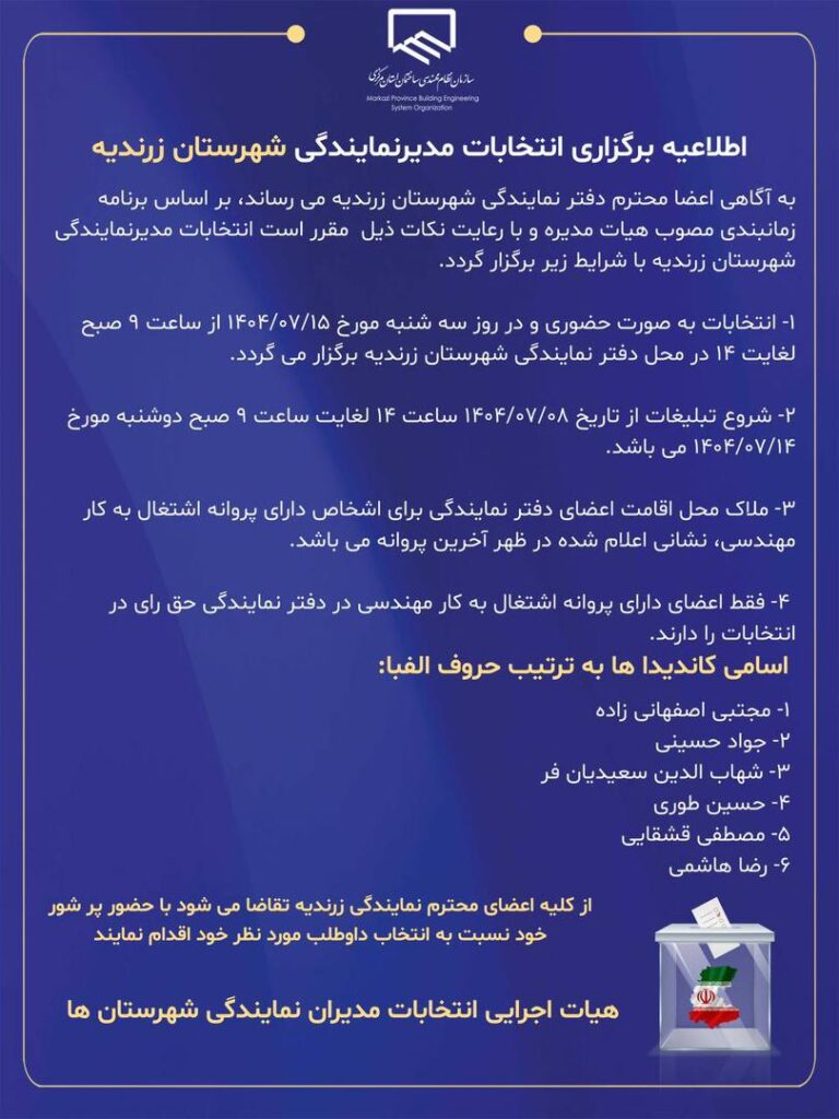اطلاعیه برگزاری انتخابات مدیرنمایندگی شهرستان زرندیه