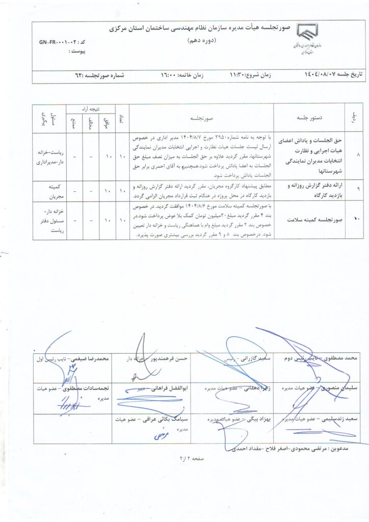 ساختمان شماره 1: خیابان شهید شیرودی، نبش کوچه مریم میرزاخانی، سازمان نظام مهندسی ساختمان استان مرکزی.