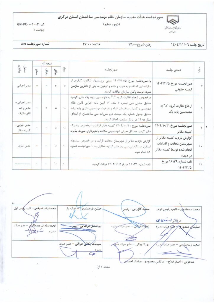 ساختمان شماره 1: خیابان شهید شیرودی، نبش کوچه مریم میرزاخانی، سازمان نظام مهندسی ساختمان استان مرکزی.