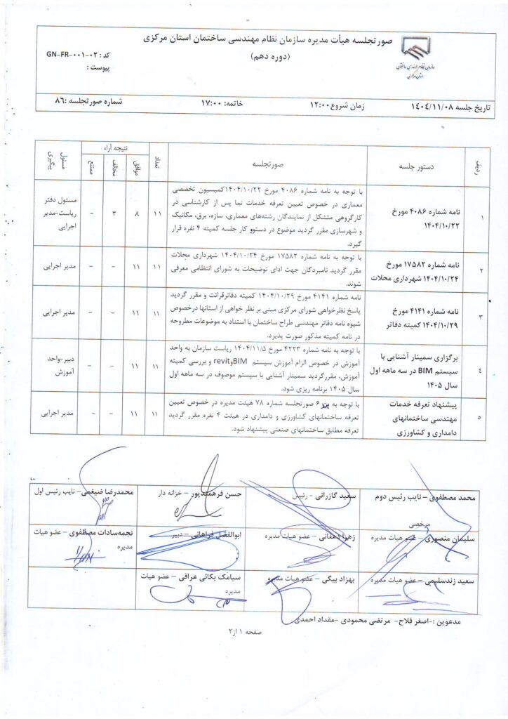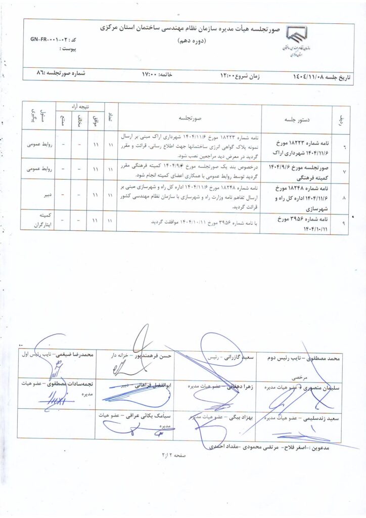 ساختمان شماره 1: خیابان شهید شیرودی، نبش کوچه مریم میرزاخانی، سازمان نظام مهندسی ساختمان استان مرکزی.
