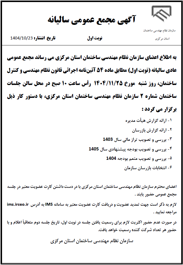 5. آگهی مجمع عمومی سالیانه ۱۴۰۴ ( نوبت اول )