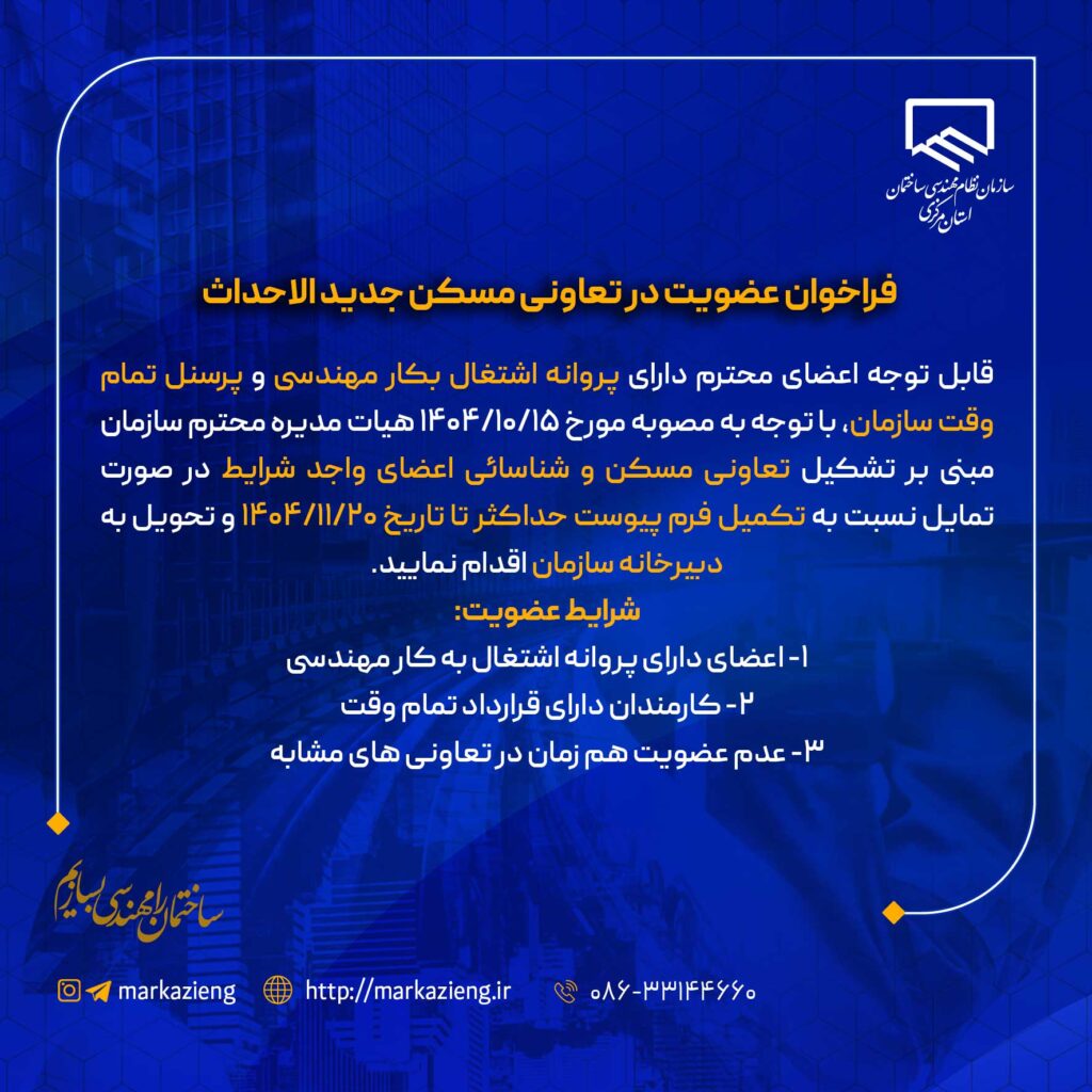 - فراخوان عضویت در تعاونی مسکن جدید الاحداث